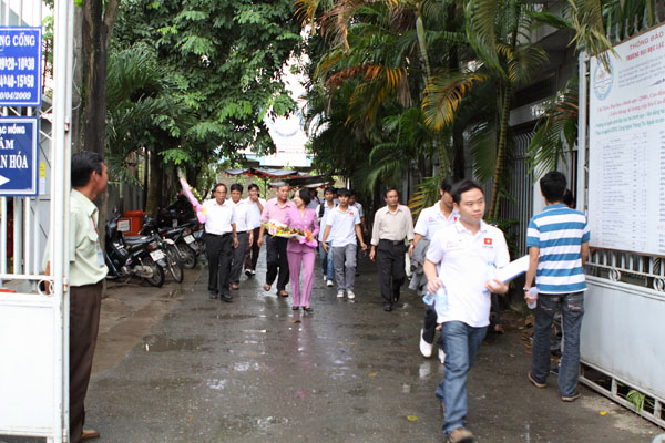 Lãnh đạo tỉnh và thầy cô tiễn đoàn ra xe