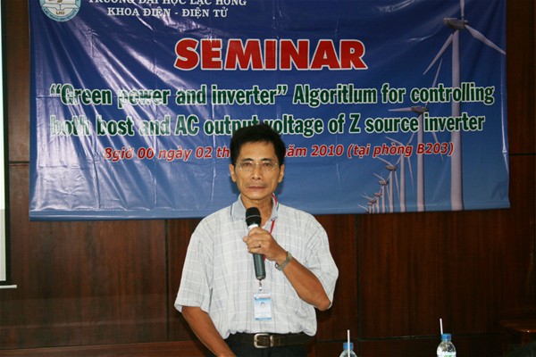 Sáng ngày 02/10/2010, tại phòng B203 trường Đại học Lạc Hồng đã diễn ra buổi Seminar “Green power and inverter” Algoritlum for controlling both bost and AC output voltage of Z source inverter do Tiến sĩ Trần Quang Vinh – Trường Đại học ULSAN – Hàn Quốc báo cáo.