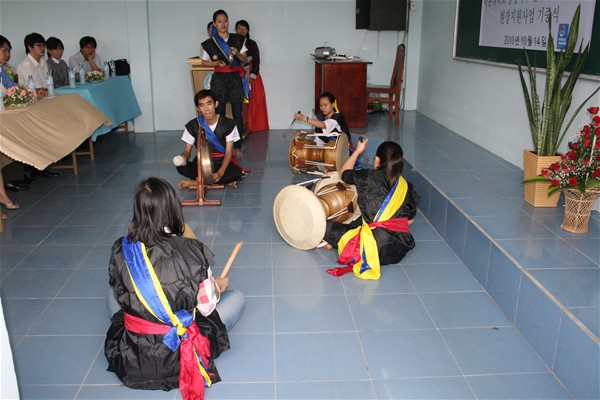 Tiết mục đánh trống Tứ vật của sinh viên năm 3 ngành Hàn Quốc