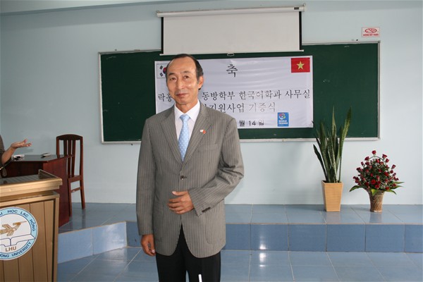 Phát biểu tại buổi lễ, Tiến sĩ Trần Hành thay mặt lãnh đạo nhà trường cảm ơn tổ chức KOICA đã hỗ trợ nhà trường trong việc thành lập phòng tư liệu Hàn Quốc. Mong muốn của nhà trường là làm sao để sinh viên ngành Hàn Quốc được đào tạo tốt nhất, đáp ứng yêu cầu của thị trường lao động và theo đúng triết lý đào tạo của trường đại học Lạc Hồng “Đào tạo nhân lực, có vườn ươm nhân tài, sinh viên tốt nghiệp làm việc ngay không đào tạo lại”.