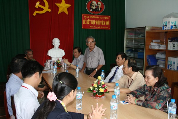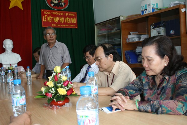 Tham dự buổi lễ kết nạp có đồng chí Nguyễn Trùng Phương – Bí thư Đảng ủy trường Đại học Lạc Hồng, NGƯT.TS Đỗ Hữu Tài – Chủ tịch Hội đồng Quản trị, bà Nguyễn Thu Lan – Thành viên Hội đồng Quản trị, Ths Diệp Cẩm Thu – Phó Hiệu trưởng, Chủ tịch Công đoàn trường cùng các thầy cô lãnh đạo của một số phòng ban và các hội viên Hội Cựu chiến binh trường Đại học Lạc Hồng.