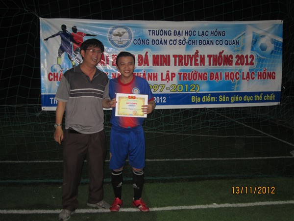 Nhằm chào mừng 15 năm thành lập trường (1997-2012) và ngày Nhà giáo Việt Nam (20-11). Tạo phong trào vui chơi thi đua rèn luyện sức khỏe cho toàn bộ Cán Bộ - Nhân Viên và Giáo Viên trong toàn trường. Được sự cho phép của Lãnh Đạo Trường ĐH Lạc Hồng, từ ngày 25/10 đến 13/11/2012 Chi Đoàn Cơ Quan và Công Đoàn Trường ĐH Lạc Hồng đã tổ chức giải bóng đá Nam mini cho Cán Bộ - Nhân Viên và Giáo Viên Trường tại Sân GDTC.