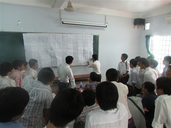 Sinh viên chuẩn bị bản vẽ để trình bày....