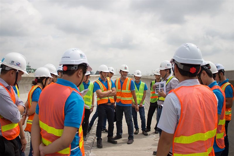 Tuyến Metro số 1 Bến Thành - Suối Tiên (TP. HCM) có chiều dài gần 20km đi qua quận 1, 2, Bình Thạnh, Thủ Đức (TP HCM) và huyện Dĩ An (Bình Dương). Đây là dự án được xem là hiện đại nhất thành phố với vốn đầu tư gần 50 nghìn tỷ đồng. Dự án được khởi công xây dựng vào tháng 8/2012 và đến nay (sau 5 năm) đã hoàn thành gần 70%. Toàn tuyến Metro số 1 có 2,6 km đi ngầm (3 nhà ga) và hơn 17 km trên cao (11 nhà ga). Trong đó 12 km cầu cạn tuyến metro đang được áp dụng công nghệ lắp hẫng cân bằng với dầm chữ U do nhà thầu Systra (Pháp) thiết kế, thi công và lao dầm do Liên danh FVR thực hiện. Thiết kế dầm chữ U được cho là sẽ tạo nên thẫm mỹ, thanh mảnh, đồng thời hai cánh dầm dùng làm tường chắn ồn. Việc được trực tiếp quan sát và được hướng dẫn về công nghệ mới này là một trải nghiệm rất bổ ích đối với sinh viên ngành cầu đường.
