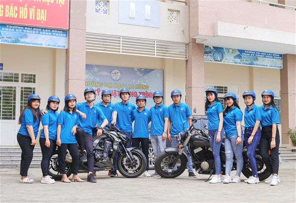 Niềm vui của các sinh viên khi nhận áo và nón bảo hiểm mới mang thương hiệu Khoa