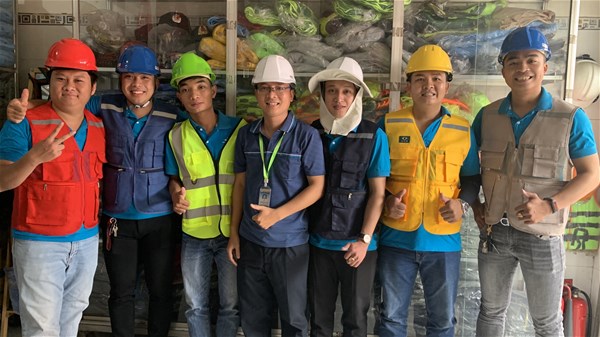 Sinh viên chuyên ngành Cầu đường trong một giờ học  thực tế về An toàn lao động