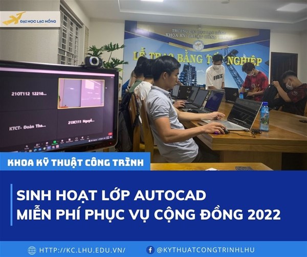 Với mục tiêu phục vụ tốt nhất cho sinh viên đang học trong Khoa. Bắt đầu từ 04/2022, Khoa KTCT sinh hoạt CLB AutoCAD cộng đồng, duy trì từ năm 2018 đến nay. Lớp AutoCAD miễn phí phục vụ cả cộng đồng lẫn sinh viên trong Khoa.