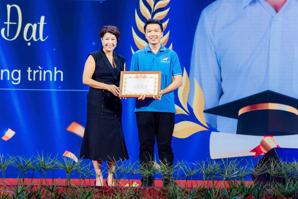 Tân sinh viên Phan Quốc Đạt nhận học bổng toàn phần từ Chủ tịch HĐ trường