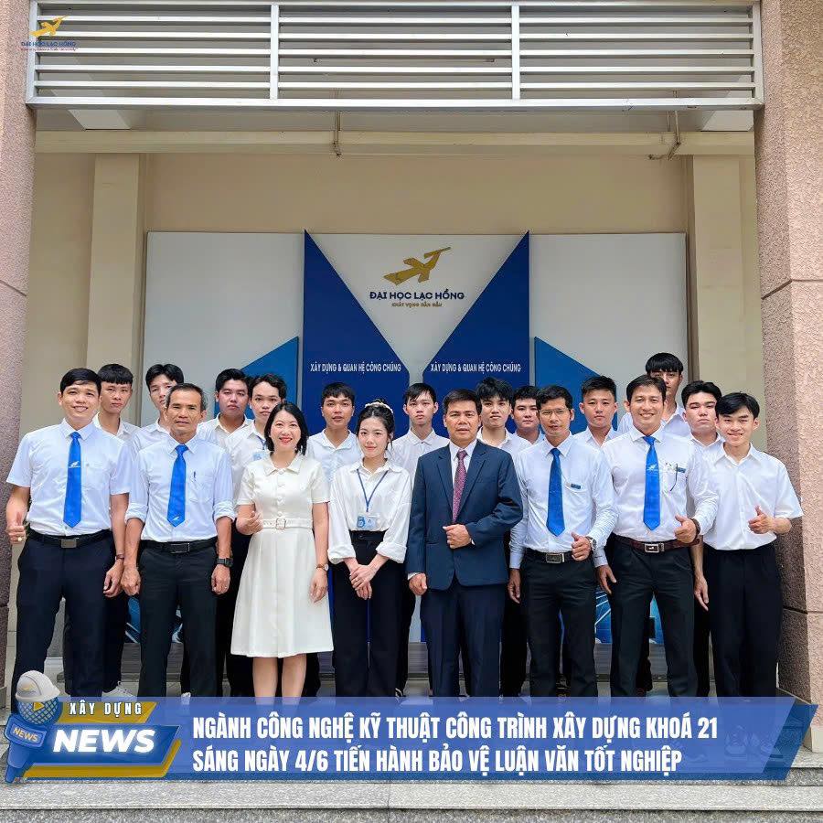 Sáng ngày 04/06/2025, tại phòng I107 - Cơ sở 6, Đại học Lạc Hồng đã diễn ra buổi bảo vệ luận văn tốt nghiệp của các bạn sinh viên khóa 21, ngành Công nghệ Kỹ thuật Công trình Xây dựng. Đây là cột mốc quan trọng, đánh dấu thành quả sau 4 năm học tập, nghiên cứu và rèn luyện không ngừng của các bạn sinh viên.