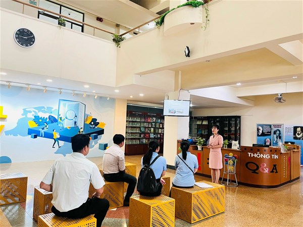 Tại buổi tham quan, cán bộ TVTT đã giới thiệu và chia sẻ kinh nghiệm trong công tác quản lý thư viện nói chung và các công tác nghiệp vụ như Tổng quan về TVTT và Hệ thống Thư viện Đại học Quốc gia TP Hồ Chí Minh; Các phần mềm quản lý và ứng dụng trong thư viện; Công tác xử lý kỹ thuật tài liệu; Cách tìm kiếm và sử dụng nguồn tài liệu bản in/ điện tử của TVTT và Hệ thống Thư viện.