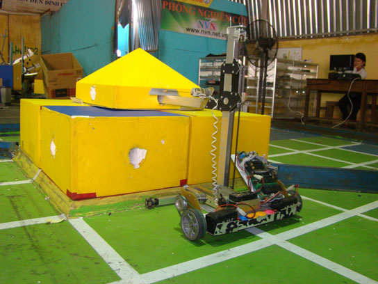 Robot xây dựng kim tự tháp trong cuộc thi Robocon 2010 được điều khiển bằng giọng nói