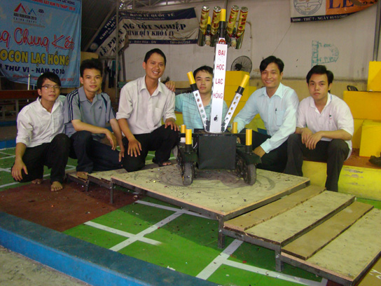 Đến tham dự triển lãm Robocon Tech-show 2010, Khoa Cơ Điện – Trường Đại học Lạc Hồng tham gia hai sản phẩm: Robot xây kim tự tháp điều khiển bằng giọng nói và Robot bắn pháo hoa. Cả hai robot đã được nhóm tác giả hoàn thành trong vòng chưa đầy một tuần. Ngày mai, đội tuyển sẽ khởi hành đi Đắc Lắc để tham dự triển lãm. Chúc cho hai đội tuyển tham dự Robocon Tech-show và 8 đội tuyển Robocon của trường ta thi đạt kết quả cao.