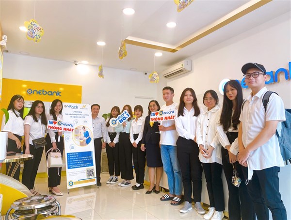 In this activity, students learned about the One bank digital banking system at Nam A Bank. In addition, they also have the opportunity to experience the role of support staff and customers.