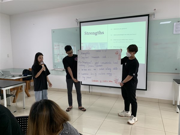 Club activities with the theme: “What is your SWOT answer?” attracted a large number of students from Faculty of Finance - Accounting to attend. With the guidance of Ms. Tran Thi Phuong Thao (lecturer of FFA), Miss Dinh Nguyen Tuong An, Mr. Nguyen Huu Thien from the Faculty of English Language, students learned the basics of SWOT, so students found out their strengths, weaknesses, and opportunities, and threats.