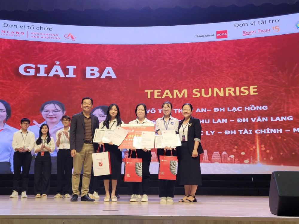 Congratulations to Vo Thi Thuy An, a student from the Faculty of Finance and Accounting at Lac Hong University, along with her two teammates from the University of Finance and Marketing and Van Lang University (Team "SunRise"), for successfully winning 3rd place in the national academic competition A&A Racing 2024.