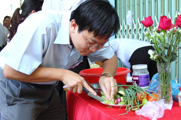 Đội số 13 gồm thầy Huỳnh Cao Tuấn, Nguyễn Trọng Vinh, Trần Công Chiến tham dự với các món: cá bống kho tiêu, ếch xào sả ớt, bầu chấm chao, trái cây tráng miệng. Thực đơn bò trộn rau mầm, gỏi sứa, nước mắt quê hương, rau câu tráng miệng do thầy Nguyễn Hữu Nam, Trần Thanh Việt, Trịnh Quang Nhật – đội số 14 chế biến. Và đội thứ ba tham dự hội thi là thầy Trần Thanh Phương, Nguyễn Bình Trọng, Đỗ Văn Đẳng (số 15) với món gỏi bưởi, lẩu mắm, trái cây tráng miệng. Những chuyên viên IT vốn quen làm việc trên máy tính, thao tác trên máy tính nhiều hơn bếp núc nhưng các thầy đã mang lại bất ngờ cho đồng nghiệp bằng các sản phẩm đẹp mắt và ngon miệng.