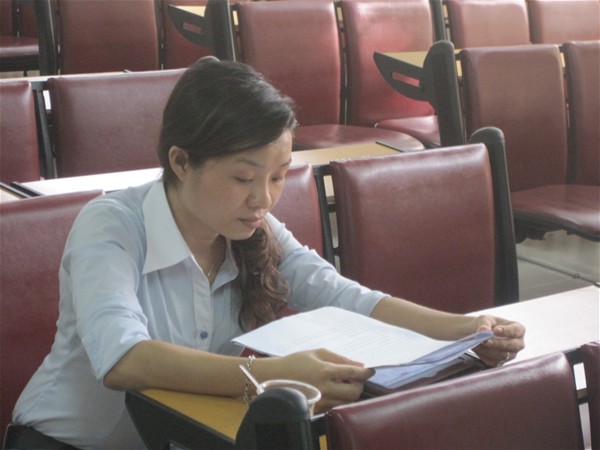 Buổi chiều ngày 20/6/2012, tại phòng B203 của Trường Đại học Lạc Hồng đã tổ chức buổi họp kiểm định chất lượng góp ý cho Tiêu chuẩn 6, trưởng nhóm: cô Nguyễn Hồ Xuân Hương.