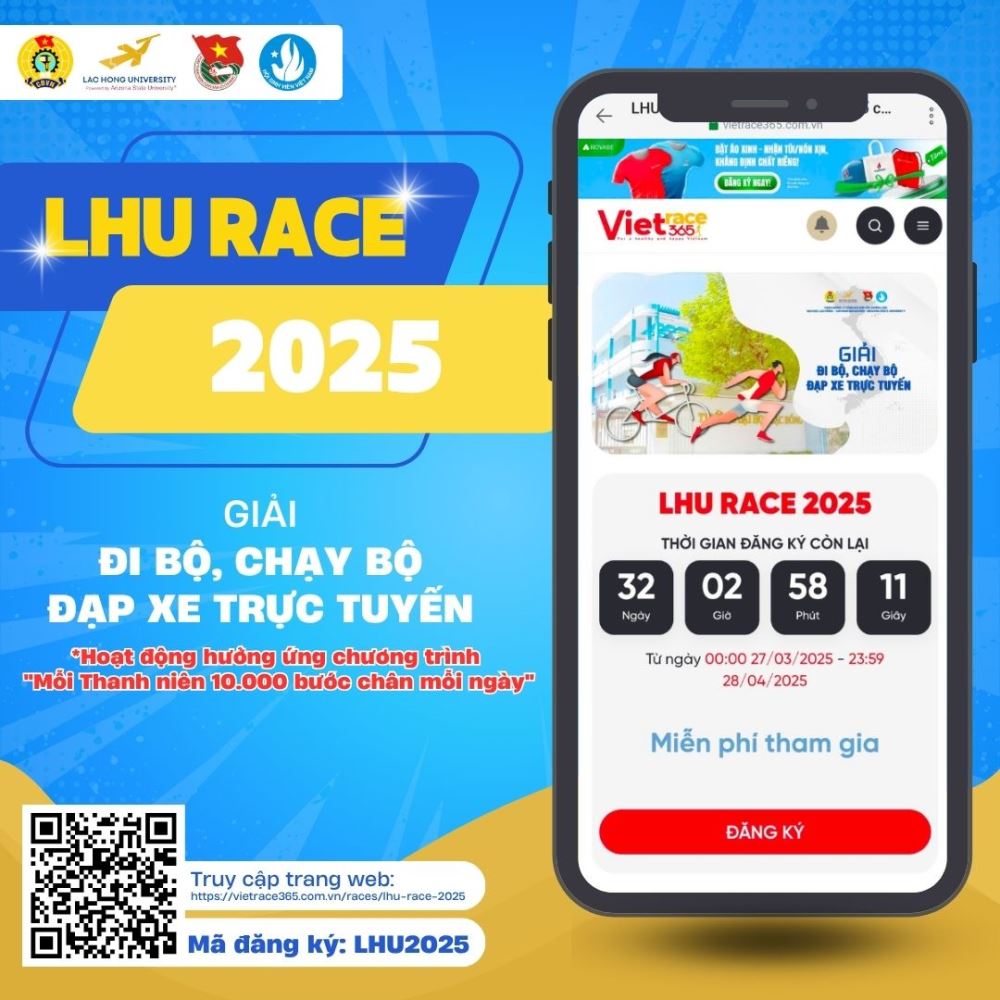 LHU Race 2025, với các nội dung đi bộ, chạy bộ và đạp xe, không chỉ là một giải đấu mà còn là một sáng kiến đột phá trong việc nâng cao ý thức rèn luyện sức khỏe cộng đồng. Tổ chức hoàn toàn trực tuyến trên nền tảng Vietrace365 (link đăng ký: https://vietrace365.com.vn/races/lhu-race-2025, mã đăng ký: LHU2025), giải đấu mang lại sự linh hoạt tối đa, cho phép sinh viên, cán bộ giảng viên LHU cùng đông đảo đoàn viên, thanh niên trên cả nước tham gia mọi lúc, mọi nơi mà không cần chi phí. Đây là một bước đi chiến lược của LHU nhằm xây dựng một môi trường học đường năng động, lành mạnh, tạo tiền đề cho sự phát triển cả về trí tuệ lẫn thể chất.