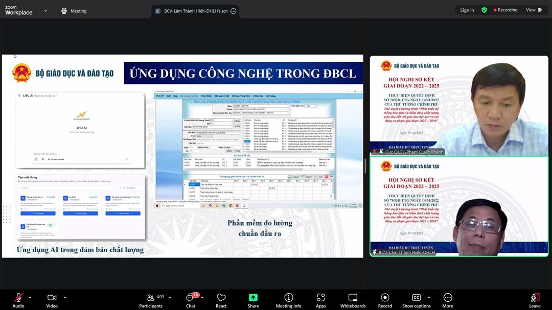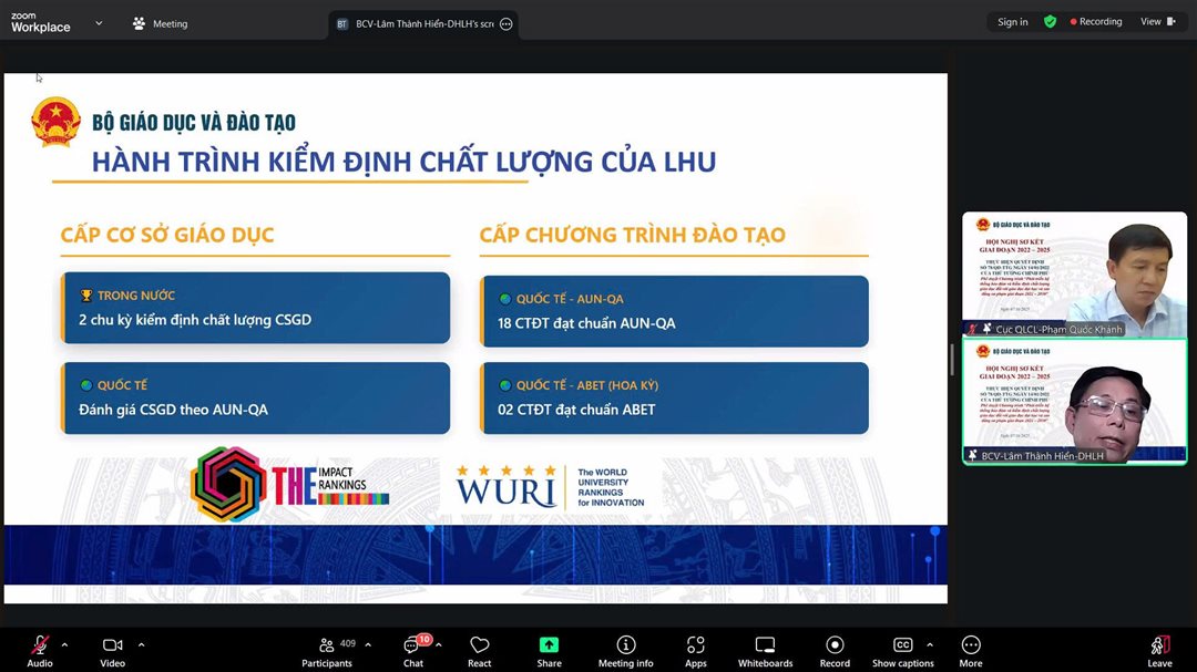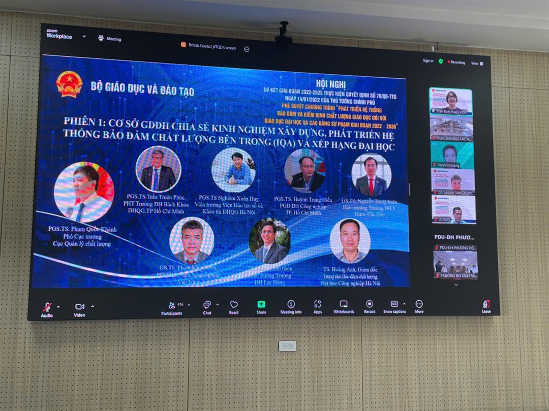 Hội nghị sơ kết việc thực hiện Quyết định số 78/QD-TTg của Thủ tướng Chính phủ. Phê duyệt Chương trình "Phát triển hệ thống bảo đảm và kiểm định chất lượng giáo dục đối với giáo dục đại học và cao đẳng sư phạm giai đoạn 2022 - 2030" diễn ra theo hình thức trực tuyến, do Cục Quản lý Chất lượng tổ chức, với sự tham dự của 7 cơ sở giáo dục đại học trên cả nước.
