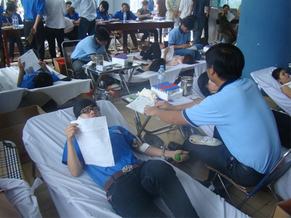 Morning of October 13, 2011 Lac Hong University’s Youth Union cooperated with Dong Nai province’s Red Cross Association and Cho Ray Regional Blood Transfusion and Haematology Centre to launch a humanitarian blood donation program named “A drop of blood, Millions of hearts” (Mot giot mau, Trieu tam long).