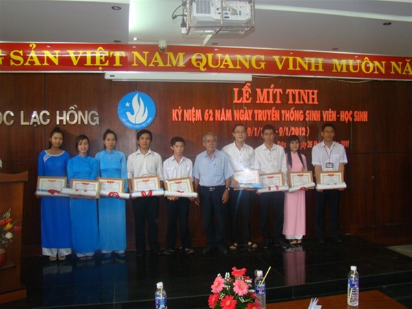 A meeting to celebrate the 62nd year of the Students’ Day was held on December 26 at Lac Hong University. At the meeting, the university Students’ Association awarded “ Sao Thang Gieng” (January Star) prize to Phung Quang Luu – student of Faculty of Electro mechanics and " Sinh Vien 5 Tot" to 61 typical students.
