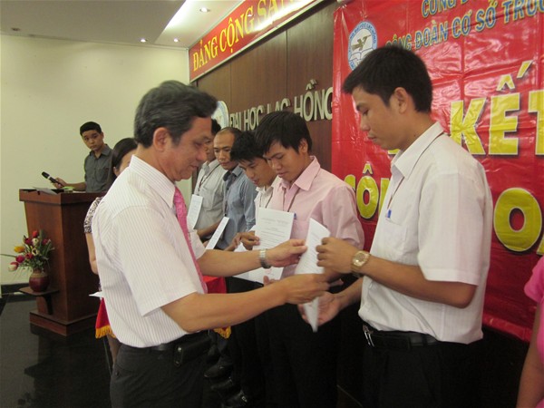 Implementing Union member increasing plan 2013, LHU organized first turn Union member admission ceremony at Room B 203 on May 8. The ceremony was attended by Dr. Diep Cam Thu - Chairman of Trade Union, Dr. Nguyen Van Nam - Vice Chairman of Trade Union, representatives of the Union Executive Committee, Union group leaders and 33 admitted members.