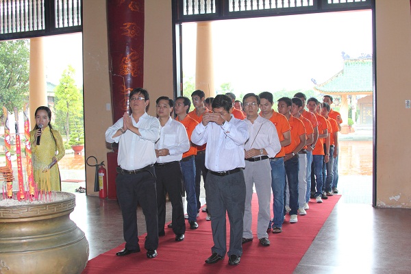 Lac Hong Robocon degelation burnt incense at Tran Bien Temple of Literature.