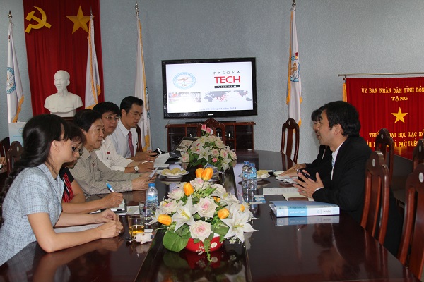 Rector People's Teacher Dr. Do Huu Tai; Vice Rector Lam Thanh Hien, MSc - Head of Academic Affair Dept.; Ho Vien Phuong, MSc. - Vice Head of Academic Affair Dept; Dean of Oriental Studies Faculty Dr. Nguyen Thi Anh warmly welcome Pasona Tech Vietnam delegation.