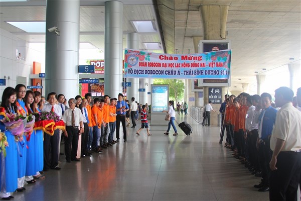 In the morning of August 27 at 09:15 a.m, Lac Hong University's Management Board and members were present at Tan Son Nhat airport to welcome Dong Nai-based Lac Hong robocon delegation home after winning at 2014 ABU Asia-Pacific Robot Contest held in Pune, India. The welcome ceremony also saw the attendance of representatives of Dong Nai provincial Management Board.