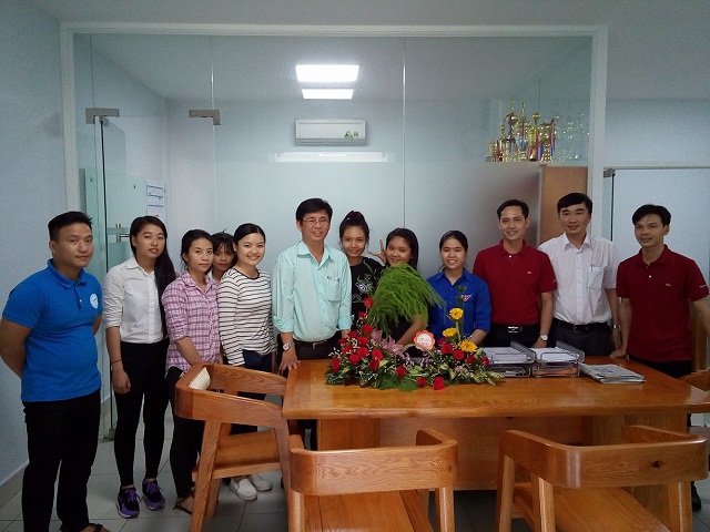 Representatives of Youth Union - Student Association presented flowers to Vice Rector Lam Thanh Hien.