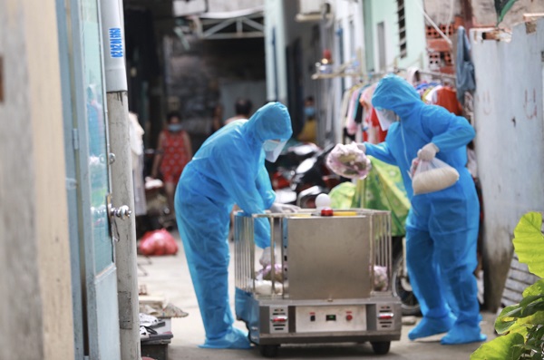 This robot is equipped with a camera and a direct microphone connection by Wi-Fi or 3G.  In addition, it can disinfect infected areas, isolation and blockade areas with a capacity of about 20 liters of liquid. It is also made from highly durable, water-proof materials in accordance with industrial standards with a total manufacturing cost of about VND 60 million.