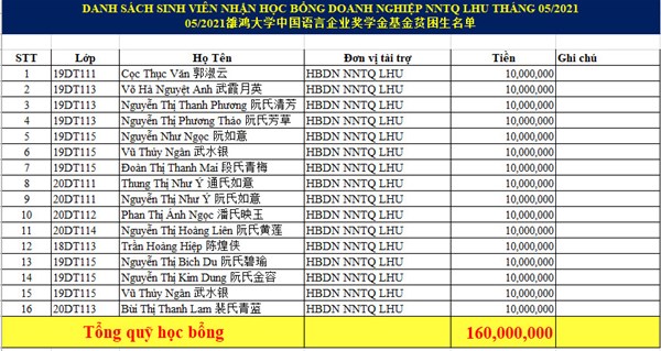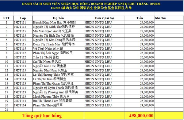 Ms. Oanh said “For the sake of students, we have to do more, try to the end, to do the most for our students. We feel so lucky! In May 2021, the Consulate General of the People's Republic of China in HCM City and the Chinese Business Association in HCM City sponsored the Chinese Language Department VND 200,000,000 as scholarships for 16 students with difficult circumstances."