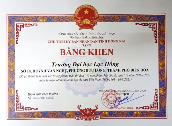 The Provincial Association of Victims of AO/dioxin also honoured 77 outstanding collectives and individuals. In addition, LHU, Lac Hong Bilingual School and Tan Buu Long Company received the certificates of merit from the Chairman of the Dong Nai People's Committee for their contributions to the “Action for AO/dioxin victims” movement over the past 5 years.