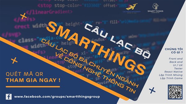 Faculty of Information Technology, LHU has just established the Smart Things Club with the aim to faciliate students' knowledge exchange and mutual learning. The club also desires all members to have experience with real projects. The main goal of the club is to make each member become dynamic, inquisitive, experienced as well as be able to work in groups. The Smart Things club aims at IT students and lovers.