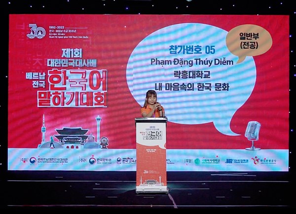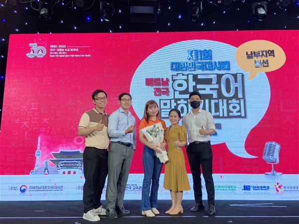 On March 20, at the Southern Regional Semi-Final of the National Korean Speaking Contest - the 1st Korean Ambassador Cup 2022, Pham Dang Thuy Diem from class 18DH114, Korean Studies major, Faculty of Oriental Studies, LHU excellently took Third Place.
