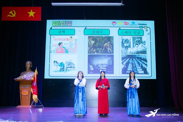 Participating in the 10th K-Speech contest, LHU, Faculty of Oriental Studies registered two categories: individual speech (student Vu Thi Thu Hau, class 19DH112) and group speech (students including Nguyen Thi Duyen, Nguyen Thi Nha Phuong and Tran Thi Thu Hien, class 19DH114). As a result, students of LHU won a Consolation prize at the group speech category.