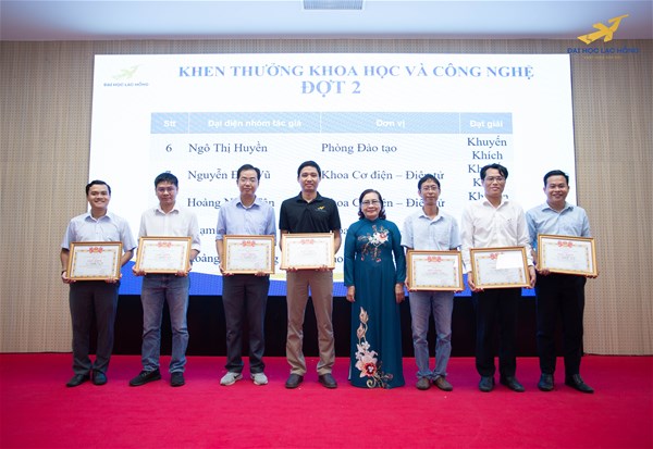 On this occasion, LHU praised and rewarded 75 individuals and 3 collectives including the Faculty of Pharmacy, the Faculty of Mechatronics and Electronics and the Center for Information and Resources for their outstanding achievements in science and technology activities, innovative and creative solutions in the 2021-2022 academic year. The University also launched the 2022-2023 school year's initiative theme. More useful research topics and innovative solutions are expected to be carried out to contribute to improving the quality of teaching and learning next year.