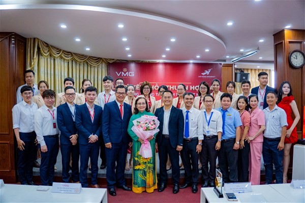 The signing ceremony saw the presence of Dr. Nguyen Thi Thu Lan - Vice Rector, MA. Huynh Thuc Hieu - Deputy Director of Admissions and Public Relations Center, Dr. Nguyen Quoc Huy - Dean of Faculty of Finance and Accounting, MA. Le Duc Thinh - Dean of Faculty of English Language and staff of Admissions and Public Relations Center. On the VMG side, there were Mr. Nguyen Quoc Khanh - System Director; Mr. Nguyen Xuan Bang - Manager of Human Resources Department, and representatives of departments.