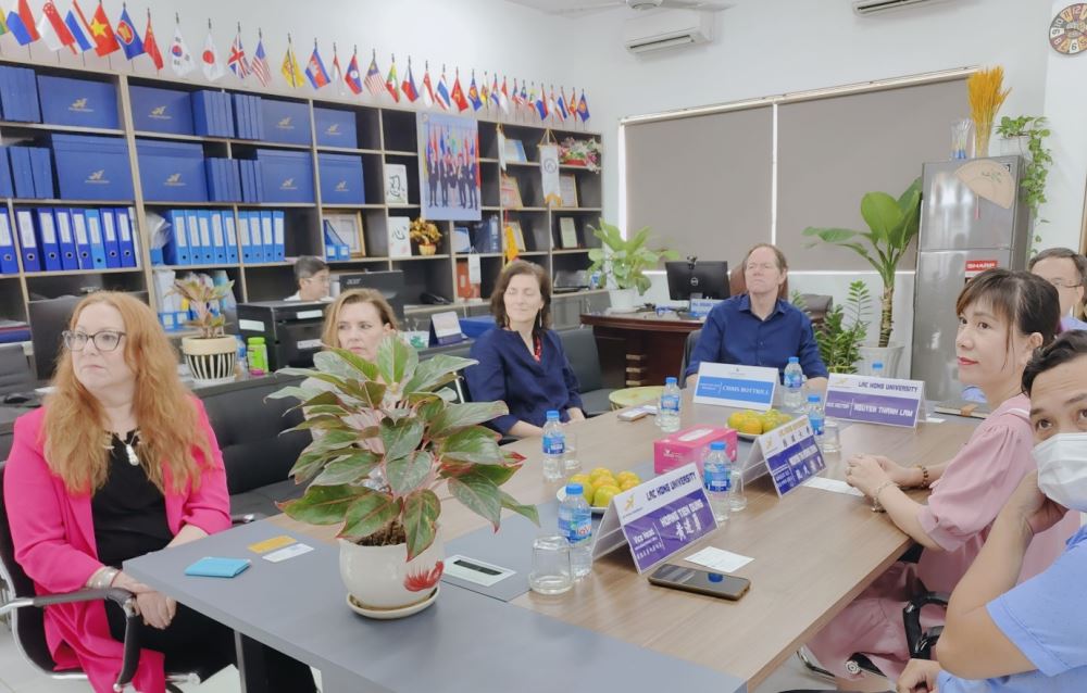 After the meeting with LHU, the delegation was guided to visit the University’s facilities system such as the Studio room, the Lab and the AI room,.... During the visit, the delegation of Capilano University was very excited to experience the models, projects carried out by students at the AI room as well as practical experiences at the Studio room.