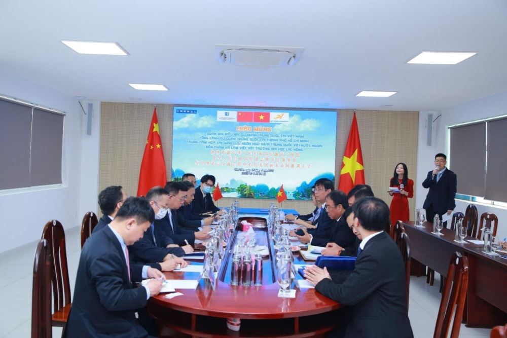 From LHU's side, there were DSc. Lam Thanh Hien - Rector; Assoc. Prof. Dr. Nguyen Vu Quynh - Vice Rector; Dr. Nguyen Huu Nghi - Dean of Faculty of Oriental Studies; Nguyen Thi Hoang Oanh, M.A - Head of Office of International Affairs cum Vice Dean of Faculty of Oriental Studies; Hoang Tien Dung, M.A - Deputy Head of Office of International Affairs; Phan The Anh, M.A - Program Head of Chinese Language Department; Luong Van Huy, M.A - Department Head of Chinese Language and specialists of the Office of International Affairs.