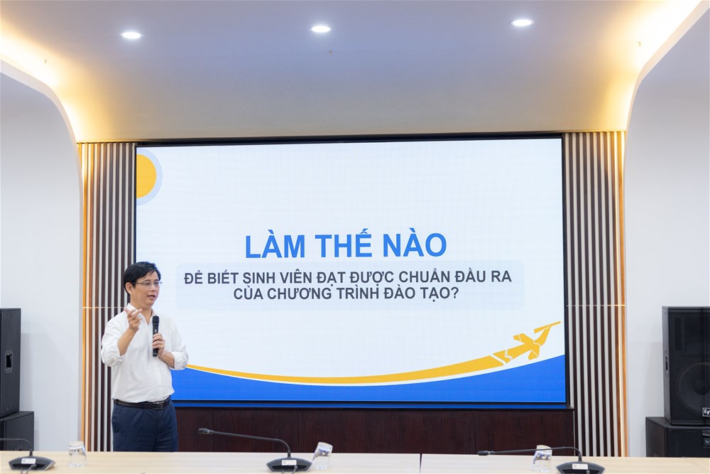 Also at the training session, Assoc. Prof. Dr. Nguyen Thanh Lam - Vice Rector of LHU presented how to evaluate the outputs of the training program according to AUN - QA standards such as: designing Bloom-based outcome standards; designing outcome-based detailed outlines; methods for assessing the module's outcome levels. His sharing has helped the School clearly understand the steps and assessment methods to measure the levels of the module's outputs as well as the training program's outputs.
