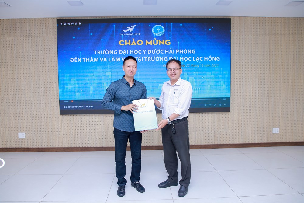 On December 22, 2023, the delegation of Hai Phong University of Medicine and Pharmacy led by Mr. Pham Thanh Nguyen - Director of Center of Educational Testing and Quality Management as Head of the delegation, along with officials and lecturers visited and worked with LHU.