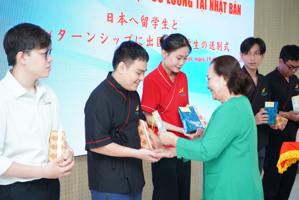 The farewell ceremony took place successfully with the participation and presence of Dr. Nguyen Thi Thu Lan - Vice Rector; Nguyen Thi Nhu Thuong, M.A - Vice Dean of Faculty of Oriental Studies; Tran Minh Thuy Duong, M.A – Head of Department of Japanese Studies; Nguyen Thi Hoang Oanh, M.A – Head of Office of International Affairs; Hoang Tien Dung, M.A - Deputy Head of Office of International Affairs; all lecturers of the Department of Japanese Studies; and the presence of 5 students who are about to study and join paid internships in Japan.