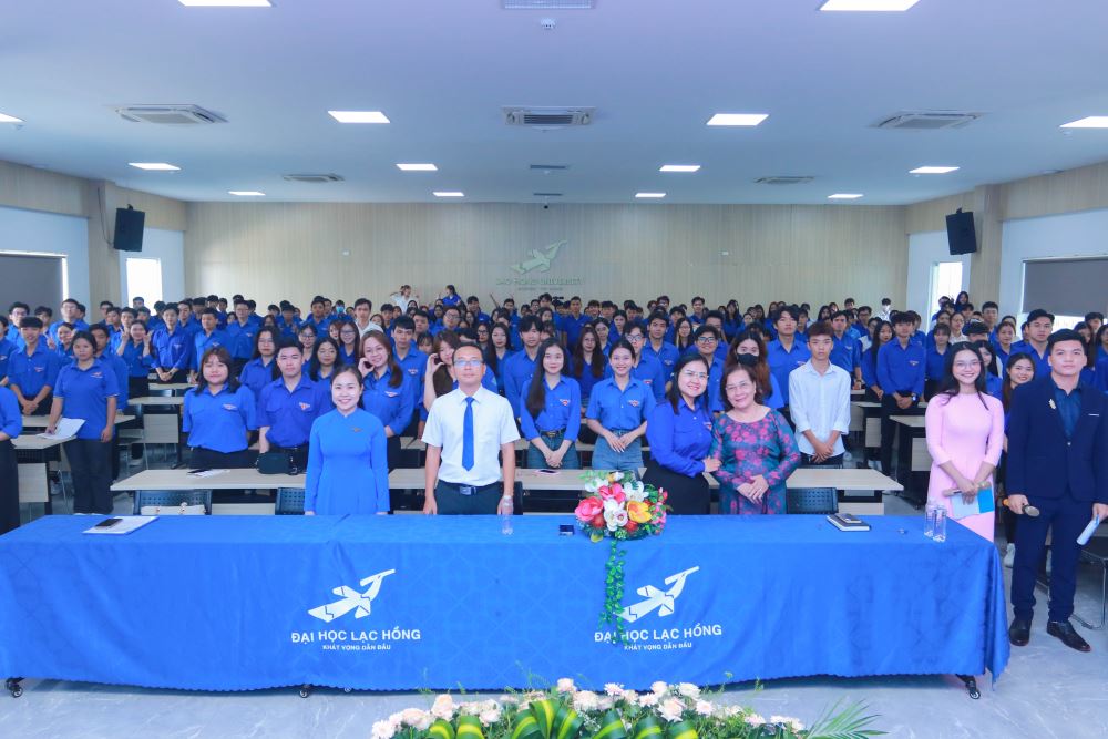 On the LHU's side, there were Outstanding Teacher Dr. Nguyen Thi Thu Lan - Vice Secretary of Party Committee, Vice Rector; Comrade Truong Le Bao Trinh - Secretary of Youth Union; representatives of affiliated units; former Secretaries; and more than 300 students, Union cadres and members.