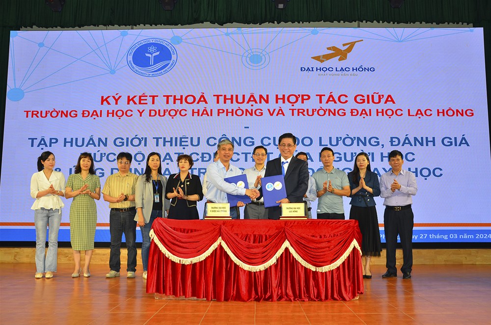 The ceremony was attended by, on LHU's side, Dr. Lam Thanh Hien - Rector; Dr. Le Phuong Truong - Head of Office of Educational Testing and Q.A. For HPMU’s side, there were Prof. Dr. Pham Minh Khue - Secretary of the Party Committee, Chairman of the University Council; Associate Professor Dr. Nguyen Van Khai - Rector - Director of Hai Phong Medical University Hospital; along with members of the Board of Rectors and representatives of functional units.