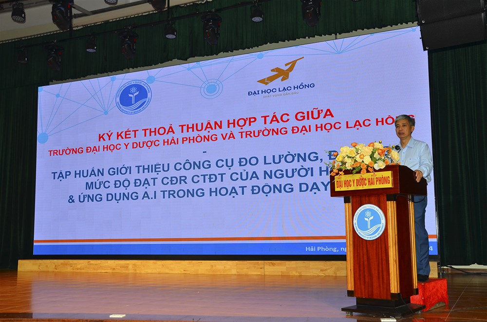 Within the framework of the cooperation agreement signing ceremony, Dr. Lam Thanh Hien - Rector of LHU presided a training workshop to introduce tools and methods to measure and evaluate expected learning outcomes; and applications of AI in teaching and learning. In addition to teaching activities, the University pays due heed to scientific research, consultation, high-quality technology applications and transfer in the field of educational management and administration. He also emphasized both sides will act decisively, responsibly and effectively, aiming for long-term and sustainable strategic cooperation so that they can maximize their potential and strengths to improve the quality of human resources, especially in Medicine and Pharmacy.