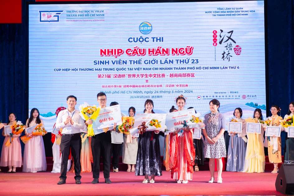 The Chinese Bridge Competition is organized annually by the HCM City University of Education in collaboration with the Chinese Consulate General in HCM City to create a useful playground for Chinese language learners at universities and colleges in Southern Vietnam to exchange, express their love and understanding of Chinese language, culture, and artistic talent, at the same time promoting the friendship between the people of China and Vietnam.