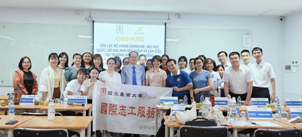 The delegation was welcomed by Assoc. Prof. Dr. Nguyen Thanh Lam - Vice Rector; Ms. Nguyen Thi Hoang Oanh - Head of Office of International Affairs; Ms. Nguyen Thi Nhu Thuong - Vice Dean of Faculty of Oriental Studies; Mr. Hoang Tien Dung - Deputy Head of Office of International Affairs; Mr. Phan The Anh - Head of Department of Chinese Language and students majoring in Chinese Language. From the LOHAS Sunshine Club, there were Ms. Liu Sin Yin - Head and members.
