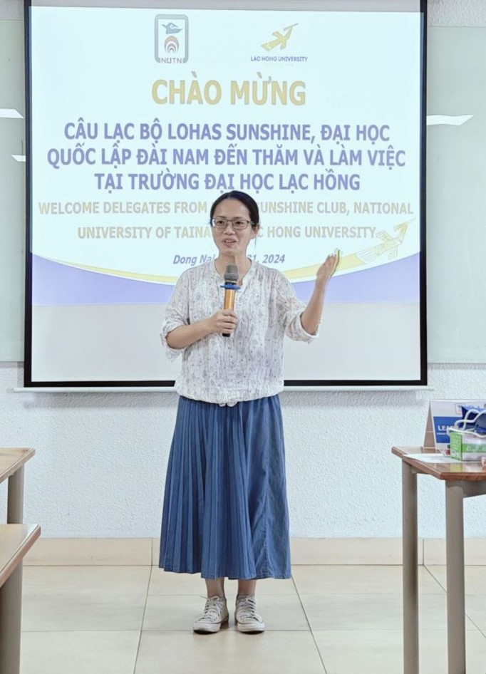 Ms. Liu Sin Yin - Head of the LOHAS Sunshine Club, NUTN giving her remarks
