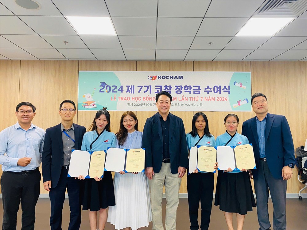 The Korean Chamber of Commerce and Industry (KoCham) on October 7 afternoon, 2024 awarded 4 scholarships each worth VND 5 million to 4 students of LHU. This is the 7th time the KoCham has organized the scholarship award ceremony.